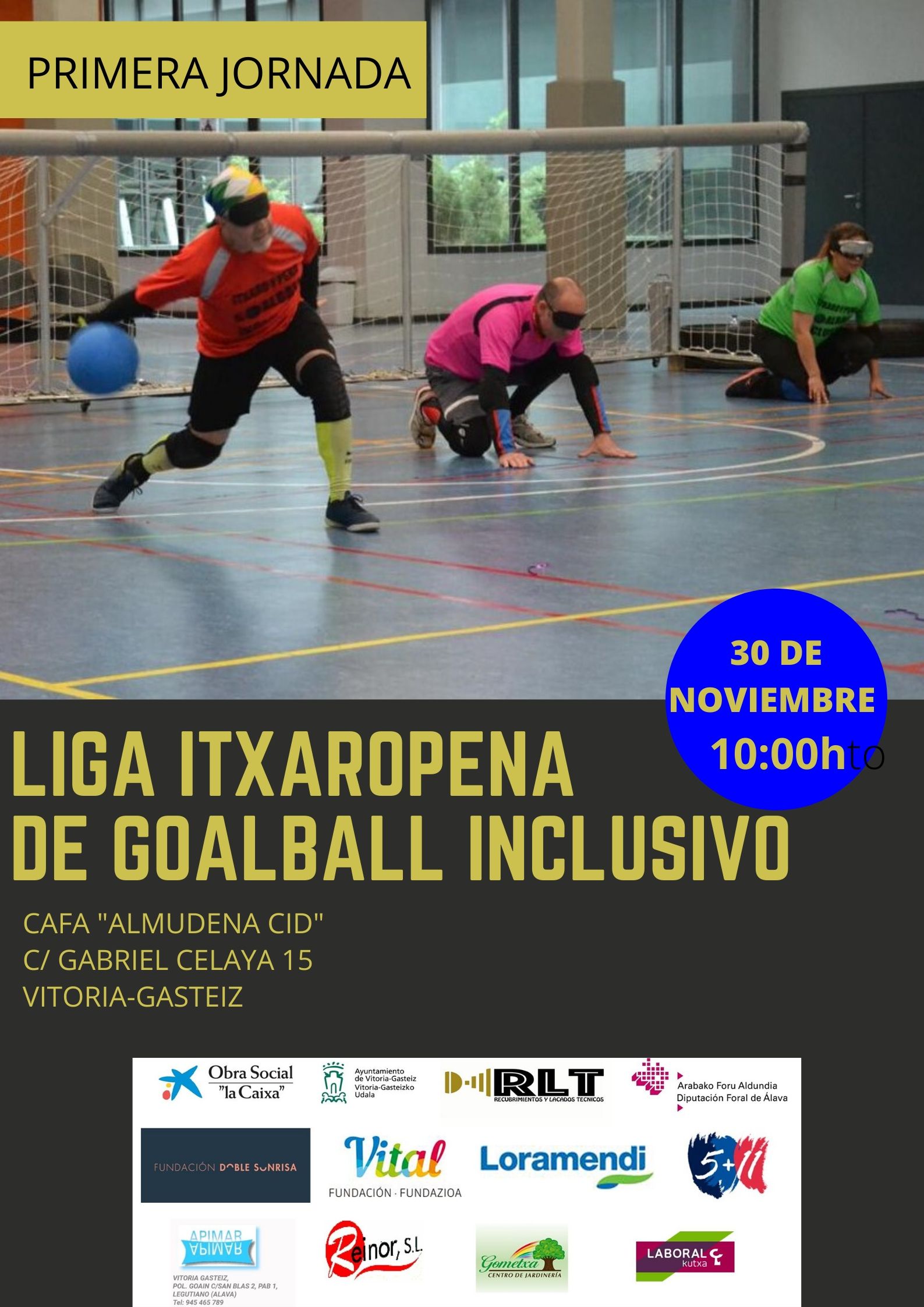 Apuntad el 30 de noviembre en vuestras agendas porque daremos comienzo a la Liga Itxaropena de Goalball Inclusivo en el CAFA «Almudena Cid» de Vitoria. Nos encontraremos todos allí a las 10:00h de la mañana. Os seguiremos informando a través de este blog y en nuestras RRSS.